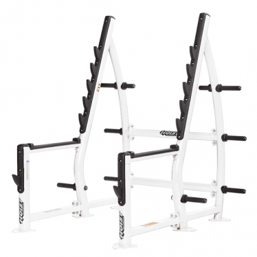 Стойка CF-3367 от компании Hoist используется для приседаний со штангой. Пользователь полностью обезопасен стационарными ограничителями, которые предусмотренны строением тренажера.