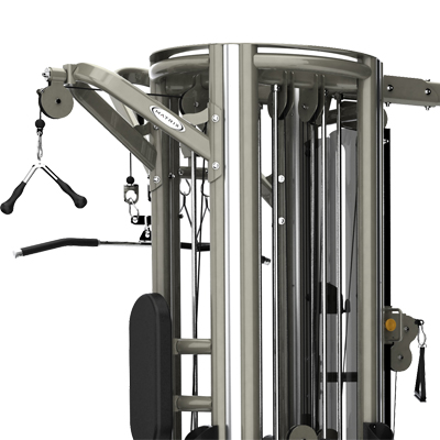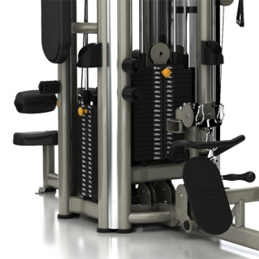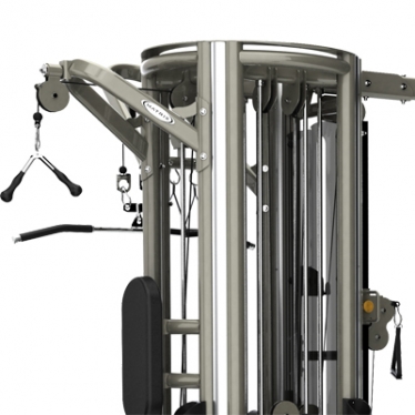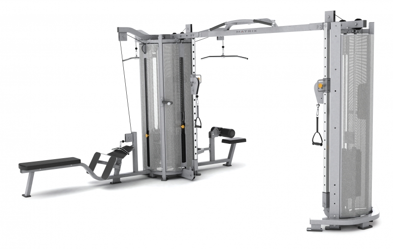 Современная мультистанция G1-MS50 на 5 позиций от фирмы Matrix представляет собой надежный блочный кроссовер. В комплект входят такие рабочие станции: верхняя тяга, трицепс в положении стоя, гребля в положении сидя и еще две тяги с возможностью регулирования высоты и выполнениями махов ногами. Каждый из перечисленных стеков имеет одинаковый вес – 91 кг. Кроме того, комплектация включает удобный турник с параллельным и прямым хватом, рассчитанный на 19 уровней регулировки высоты тяги.