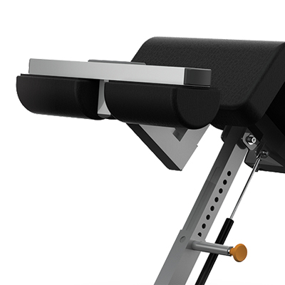 Данная скамья используется для выполнения жима, имеет отрицательный угол. Сиденье имеет газовый амортизатор, есть девять вариантов настройки, регулируется от минус десяти до минус тридцати градусов.