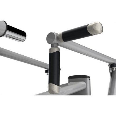 - Силовые рычаги модели оснащены двухпозиционными рукоятями, расположенными под углом 90 градусов, это позволяет задействовать разные мышечные группы, оптимально распределять нагрузку на руки.