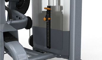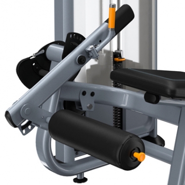 Защитный стек расположен справа от занимающихся, что позволяет регулировать нагрузки сразу в момент выполнения разгибания ног.
