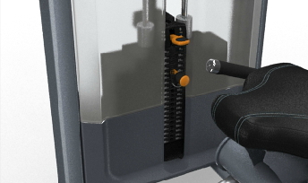 Загрузочный стек с плитами для увеличения веса находится справа от тренирующегося, что позволит ему легко подбирать вес и регулировать его как перед выполнением упражнения, так и после него.