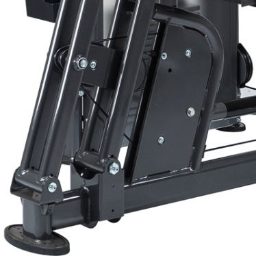 Модель отличается наличием закрытых и опорных подшипников шарового типа с минимальным уровнем трения, благодаря которым достигается необычайная плавность движений. Для изготовления основной рамы тренажера производитель использовал стальной сверхпрочный профиль с овальным сечением. В качестве подушки для спины используется уникальная технология DuraFirm с эргономичной формой. Двухпозиционная нажимная пластина обеспечивает комплексную эффективную тренировку разных групп мышц ног, в том числе и икроножные мышцы. Для плеч применяется регулируемая опора по высоте, а также модель имеет возможность настройки предварительной растяжки и изменчивый угол наклона спины. Для ног используется специальная опора с противоскользящим покрытием.