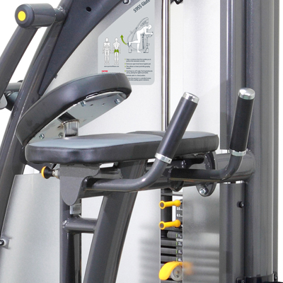 Анатомическое современное кресло тренажера наряду с защитной пластиковой поверхностью стека, обеспечивают полный комфорт и безопасность использования при выполнении упражнений.
