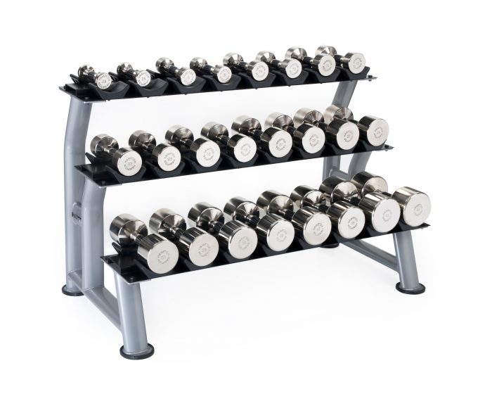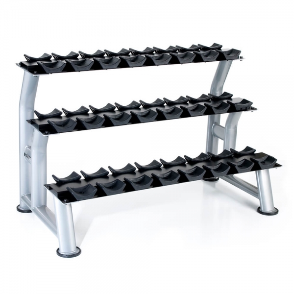 Трехъярусная подставка 3T-SDL-10 бренда Hampton – это уникальная система, которая обновит внешний вид любого домашнего спортзала, фитнес-центра или студии персонального тренера. Трехуровневая стойка с прорезиненными ячейками для гантелей до 10 пар гантелей весом 2,5-25 кг.