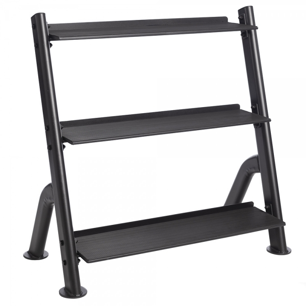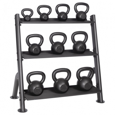 Трехъярусная подставка под гири KB-3T бренда Hampton – надежная, стабильная и прочная стойка с тремя ярусами полок, предназначенная для удобного хранения уретановых и черных гирь. Полки для гирь имеют резиновое покрытие, что обеспечивает надежное положение снарядов, а также делает загрузку и разгрузку гирь чрезвычайно простой и безопасной.