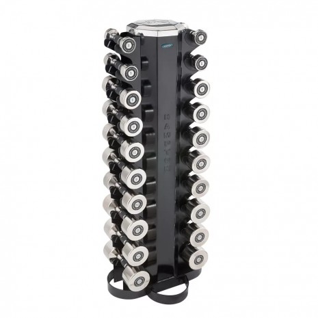 Набор гантелей Chrome Beauty-Grip™ CP-CDKR-V10 бренда Hampton включает 10 пар гантелей весом 1 кг, 2 кг, 3 кг, 4 кг, 5 кг, 6 кг, 7 кг, 8 кг, 9 кг и 10 кг и двустороннюю вертикальную подставку Hampton V-2-10.