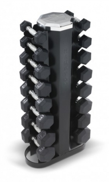 Набор CP-KDBU-V8 бренда Hampton включает 8 пар шестигранных уретановых гантелей весом 1-10 кг и вертикальную стойку для хранения гантелей V-2-8. Двухсторонняя подставка имеет удобную вертикальную конструкцию, что позволяет компактно хранить снаряды, а также удобно брать гантели со стойки и возвращать их на место. Для изготовления прочной устойчивой конструкции используется высококачественная сталь, что гарантирует надежность стойки для гантелей.