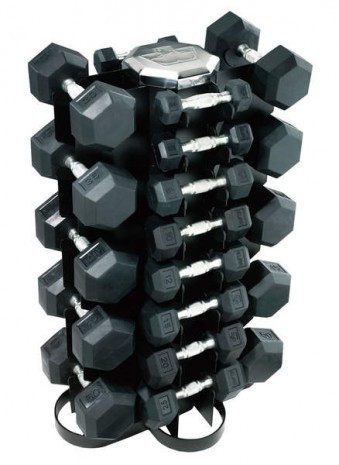 Набор шестигранных уретановых гантелей KDBU-1-25-13 бренда Hampton поставляется без стойки в комплекте.