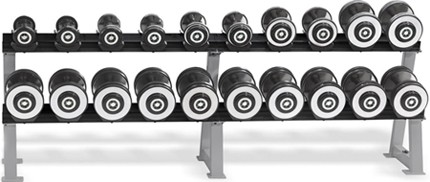 Набор гантелей SET-KECL-B не включает в свою комплектацию стойку. Чтобы обеспечить удобное хранение снарядов и оптимально организовать зону свободных весов, в дополнение к гантелям можно приобрести стойку.