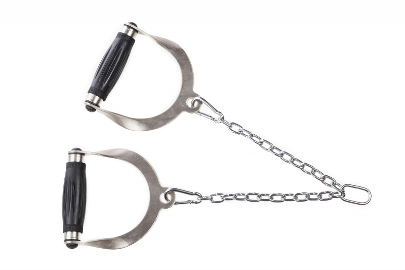 Рукоять с цепью снабжена аккуратными уретановыми захватами, которые влиты в рукоятки. Уретановые рукоятки не впитывают пот и обладают антибактериальными свойствами. Прочный уретан не разобьется и не расслоится, что гарантирует долговечность эксплуатации.