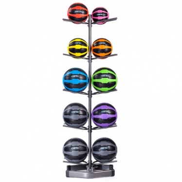Подставка под десять медицинских мячей HMBV-10 от производителя Hampton имеет вертикальную конструкцию, что обеспечивает удобный доступ к мячам. Для изготовления стойки используется высококачественный стальной профиль, поэтому она отличается прочностью и надежностью. Матовое черное покрытие делает стойку стильной и красивой.
