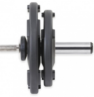 Единственные на европейском рынке диски, эргономичный дизайн которых имеет 5 изогнутых захватов. Это позволяет удобно брать диски с пола и со стойки, без риска защемления пальцев. Диск, изготовленный из чугуна, имеет покрытие из высококачественной резины. Для посадочного кольца используется нержавеющая сталь, что исключает возможность коррозии.