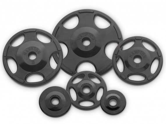 Обрезиненный черный диск с 5-ю отверстиями для рук (5 кг) HAMPTON Olympic Grip Encased Rubber Coated International Plate w/ 5 grips KHOG-R-5