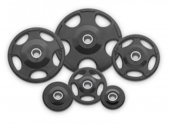 Набор уретановых дисков KHOG-U-116 бренда Hampton в комплекте с парой пружинных замков отлично подойдет для оснащения зоны свободных весов в тренажерных залах любого уровня. Диски Hampton Olympic Grip Urethane имеют эргономично изогнутые захваты, что позволяет удобно поднять их с пола или взять со стойки. За счет уникального дизайна облегчается работа со снарядами и обеспечивается безопасность, так как предотвращается вероятность защемления пальцев.