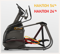 Угол наклона рамы изменяется в диапазоне 24%–54%, что позволяет менять нагрузку и включать в работу разные мышечные группы, привнося в кардиотренировку элемент силовой составляющей