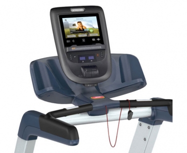 - Инновационная консоль с цветным экраном на сенсорном направлении. С ее помощью пользователь вводит настройки и устанавливает оптимальный режим, следит за ходом тренировки, слушает музыку и просматривает видео с мобильных устройств (MP3 – плеер, смартфон и планшет), выводит на экран программы со стационарного телевизора. Наличие доступа в Интернет расширяет мультимедийные возможности оборудования.