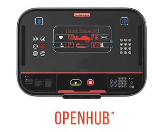 Беговая дорожка оснащена современной консолью с LCD экраном. Простой интерфейс с расширенным функционалом удовлетворит потребности любого пользователя. В оснащение беговой дорожки, как и всех кардиотренажеров этого бренда, входит система Open HUB, которая обеспечивает подключение персональных мобильных устройств, разрешение обмена данными и вывод на основной экран информации от различных фитнес-приложений, таких как Apple Health, RunKeeper, MyFitnessPal Open HUB и прочих. Кроме того, система Open HUB обеспечивает связь с системами групповых тренировок и соревнований (MyZONE, Wahoo fitness, Performance IQ). Дополнительным преимуществом этой беговой дорожки является фирменная система безопасности Star Trac.